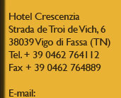 Ai Gentili Ospiti che stanno programmando una vacanza nel mondo incantato delle Dolomiti l'hotel Crescenzia porge un caloroso benvenuto e offre la tradizionale cordialità e ospitalità delle vallate ladine.