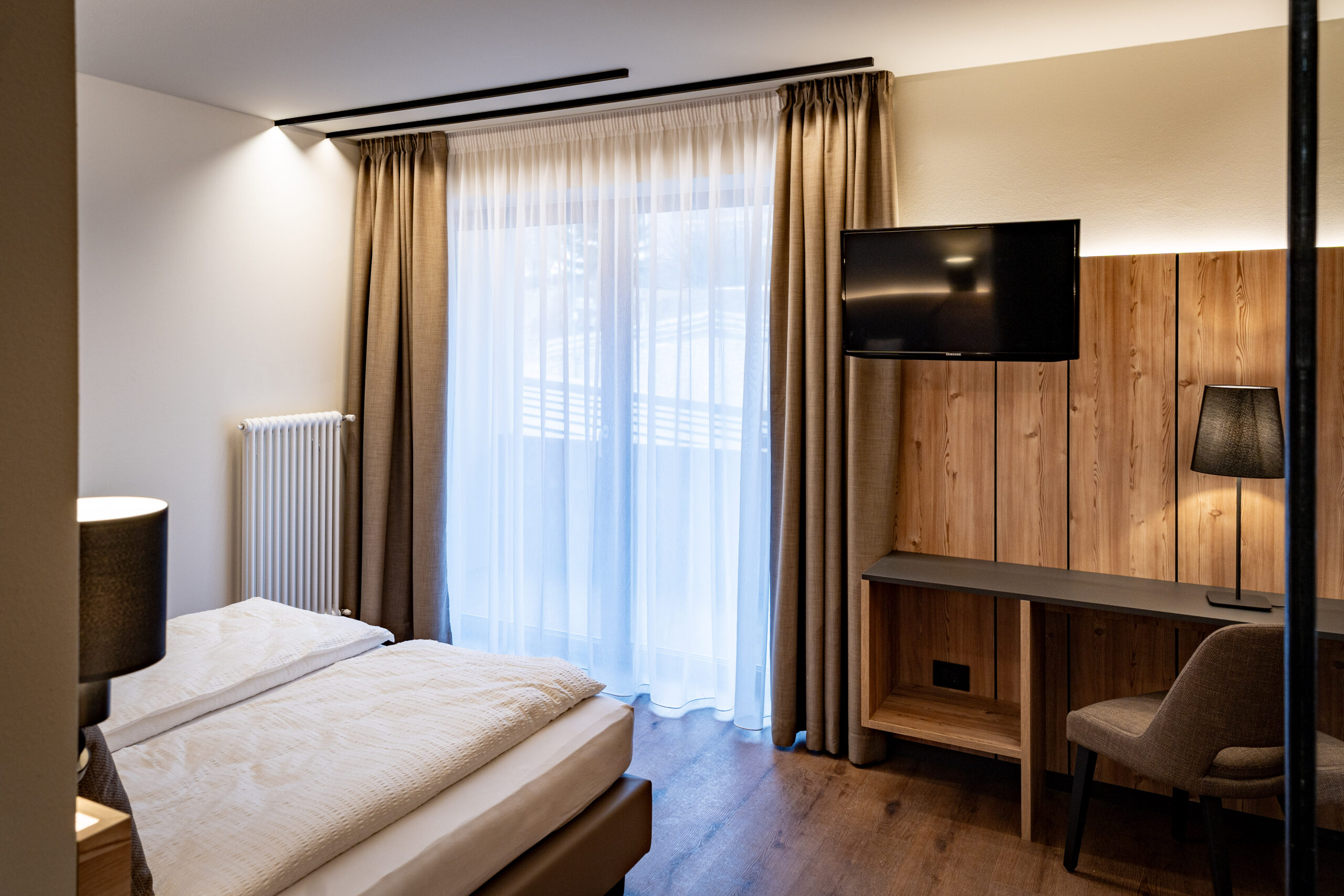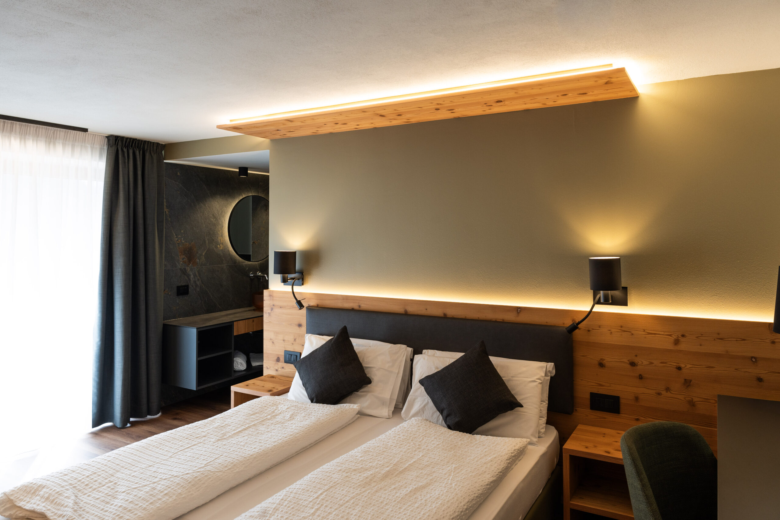 Due piani completamente rinnovati con 14 nuove camere Superior: più spazio, design moderno, bagni nuovi e tutti i comfort contemporanei. Ogni camera ha il balcone esposto a sud con vista panoramica sulle Dolomiti.
